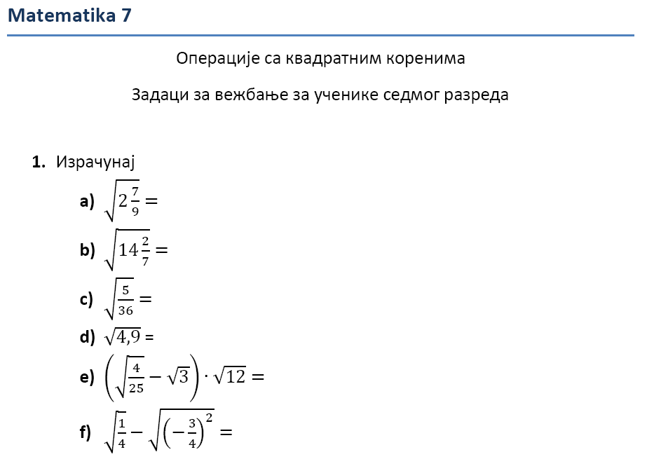 Kontrolna vežba za sedmi razred